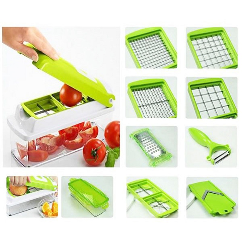 رنده همه کاره نایسر دایسر پلاس با چهار تیغه دو طرفه، برش و خرد کردن هر نوع میوه و صیفی جاتی را به اشکال مختلف آسان کرده است. با استفاده از این دستگاه میتوانید میوه و صیفی جات را به برش های مکعبی ریز و درشت، دالبری، حلقه ای، ورقه ای و همچنین چهارپر و هشت پر درآورید.